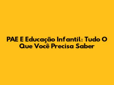 PAE E Educação Infantil: Tudo O Que Você Precisa Saber