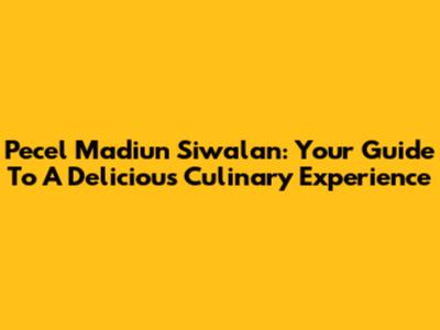 Pecel Madiun Siwalan: Your Guide To A Delicious Culinary Experience