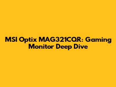 MSI Optix MAG321CQR: Gaming Monitor Deep Dive