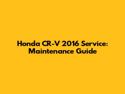 Honda CR-V 2016 Service: Maintenance Guide