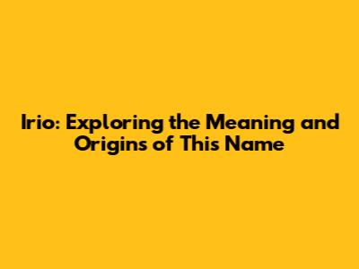Cultural Significance and Usage of the Name Irio