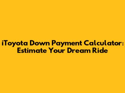 The iToyota down payment calculator is an invaluable tool for anyone planning to purchase an iToyota vehicle. By understanding the factors that affect your down payment, using the calculator effectively, and implementing smart savings strategies, you can confidently navigate the car-buying process and drive away in your dream iToyota without breaking the bank. So, go ahead, start planning, saving, and get ready to experience the joy of owning an iToyota!