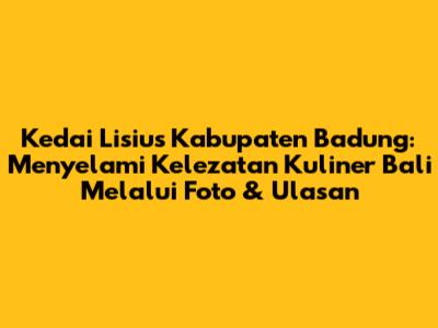 Secara keseluruhan, Kedai Lisius Kabupaten Badung menawarkan pengalaman kuliner yang tak terlupakan bagi para pecinta makanan. Dengan menu yang lezat, suasana yang nyaman, dan pelayanan yang ramah, kedai ini menjadi tempat yang ideal untuk bersantap dan bersantai. Jangan lewatkan kesempatan untuk mencicipi hidangan khas Bali yang otentik, mengabadikan momen dengan foto-foto yang menggugah selera, dan berbagi pengalaman kuliner Anda dengan orang lain. Kunjungi Kedai Lisius dan rasakan sendiri kelezatan kuliner Bali yang sesungguhnya!