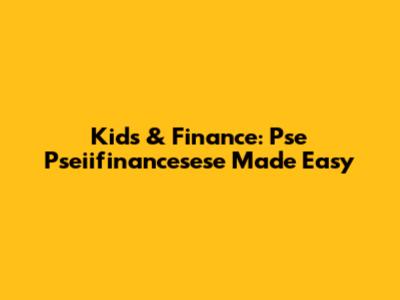 Kids & Finance: Pse Pseiifinancesese Made Easy