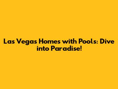 Hey there, home hunters! If you're dreaming of sunshine, shimmering pools, and the vibrant energy of Las Vegas, then you're in the right place. We're diving deep into the world of Las Vegas homes with pools, exploring why they're so awesome and how to find your perfect desert oasis. Whether you're a first-time buyer, a seasoned investor, or just looking for a change of scenery, a home with a pool in Vegas offers a lifestyle like no other. So, grab your virtual floaties, and let's jump in!