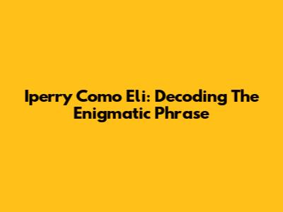 Iperry Como Eli: Decoding The Enigmatic Phrase