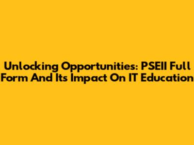Unlocking Opportunities: PSEII Full Form And Its Impact On IT Education