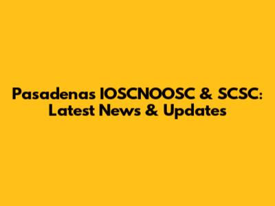 Pasadena's IOSCNOOSC & SCSC: Latest News & Updates
