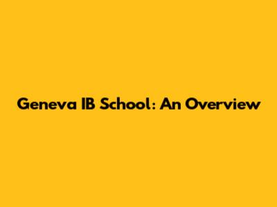Geneva IB School: An Overview