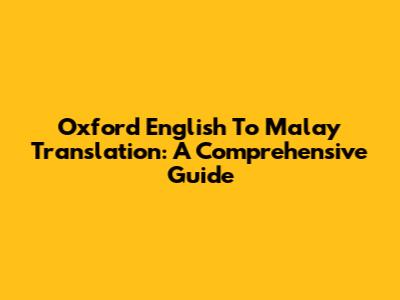 Oxford English To Malay Translation: A Comprehensive Guide
