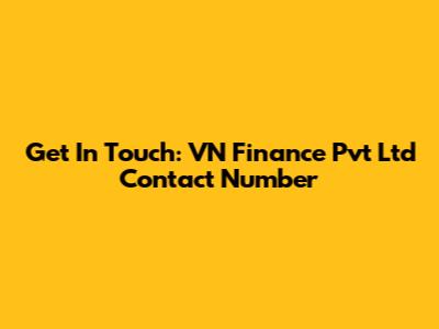 Get In Touch: VN Finance Pvt Ltd Contact Number