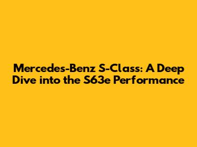 Hey guys! Today, we're diving deep into the Mercedes-Benz S-Class, focusing specifically on the S63e Performance model. This isn't just another luxury car; it's a statement, a blend of opulent comfort and raw power. So, buckle up as we explore what makes this car a true masterpiece of engineering and design.