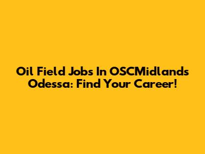 Oil Field Jobs In OSCMidlands Odessa: Find Your Career!
