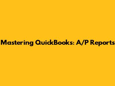 Mastering QuickBooks: A/P Reports