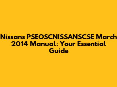 Hey there, Nissan enthusiasts and DIY gurus! Today, we're diving deep into the PSEOSCNISSANSCSE March 2014 manual. This isn't just any manual, guys; it's your go-to resource for understanding and repairing various Nissan models from that era. Whether you're a seasoned mechanic or a weekend warrior, this guide will equip you with the knowledge to tackle those tricky repairs and keep your Nissan running smoothly. We will explore the manual's core components, highlighting the key features and how you can leverage them to your advantage. Get ready to unlock the secrets of your Nissan! This manual is like a treasure map for your car, leading you to the solutions you need. So, buckle up, and let's get started on this exciting journey of automotive knowledge!
