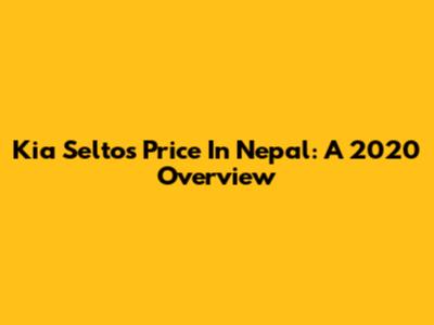 Kia Seltos Price In Nepal: A 2020 Overview