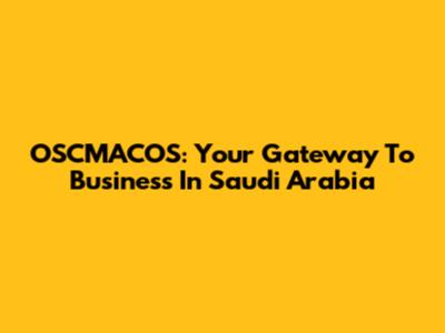 OSCMACOS: Your Gateway To Business In Saudi Arabia