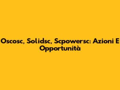Oscosc, Solidsc, Scpowersc: Azioni E Opportunità
