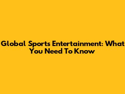 Global Sports Entertainment: What You Need To Know