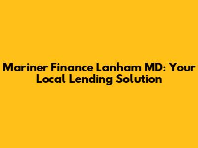 Mariner Finance Lanham MD: Your Local Lending Solution