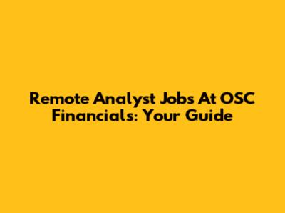 Remote Analyst Jobs At OSC Financials: Your Guide