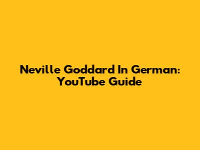 Neville Goddard In German: YouTube Guide