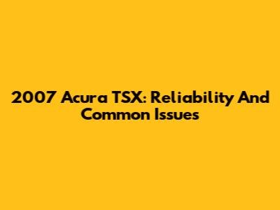2007 Acura TSX: Reliability And Common Issues
