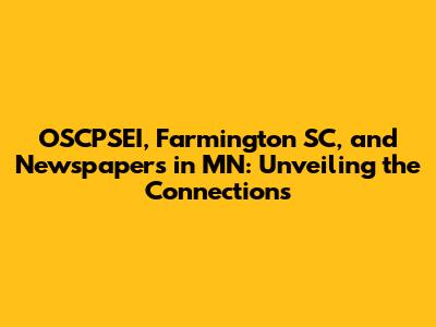 One potential connection is a business that operates in both Farmington, SC, and Minnesota. Perhaps, OSCPSEI has branches, offices, or projects in both locations. This could explain why both Farmington, SC, and Minnesota newspapers might feature stories related to the organization. Another possibility is a partnership between entities in these two locations.