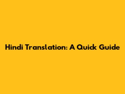 Hindi Translation: A Quick Guide