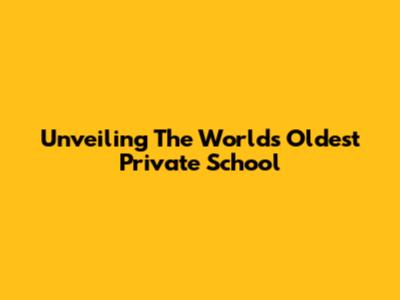 Unveiling The World's Oldest Private School