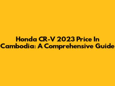Honda CR-V 2023 Price In Cambodia: A Comprehensive Guide