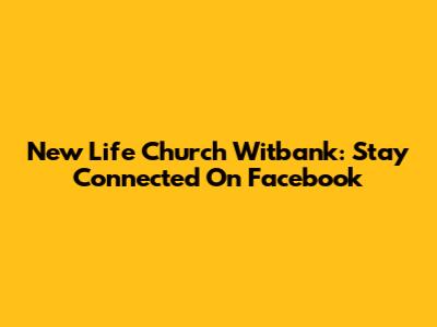 New Life Church Witbank: Stay Connected On Facebook