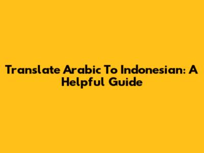 Translate Arabic To Indonesian: A Helpful Guide