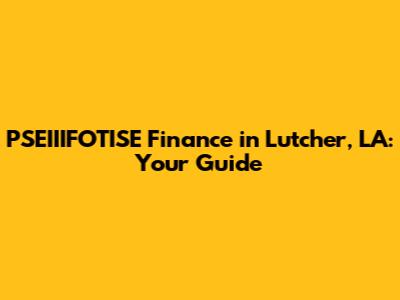 Let's dive into PSEIIIFOTISE Finance in Lutcher, LA. Navigating the world of finance can feel like trying to find your way through a maze, especially when you're dealing with specific local contexts. Lutcher, Louisiana, while a charming town, has its own unique financial landscape. Whether you're looking for investment opportunities, seeking financial advice, or simply trying to understand the local economy, knowing the ins and outs of finance in Lutcher is crucial. This guide aims to provide you with a comprehensive overview of PSEIIIFOTISE Finance in Lutcher, LA, covering key aspects, resources, and tips to help you make informed decisions.