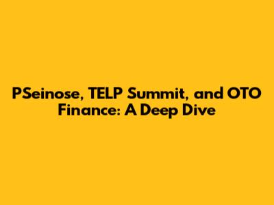 Let's dive into the exciting intersection of PSeinose, the TELP Summit, and OTO Finance. These three elements, while seemingly distinct, can create powerful synergies in today's rapidly evolving business landscape. Understanding their individual roles and how they can be integrated is key to unlocking new opportunities and achieving sustainable growth.