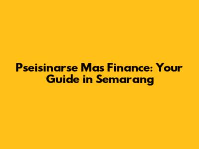 Hey guys! Looking for some financial guidance in Semarang? You've probably stumbled upon "Pseisinarse Mas Finance" and are wondering what it's all about. Don't worry, I'm here to break it down for you in a simple and easy-to-understand way. Let's dive in and explore what Pseisinarse Mas Finance is, what services they offer, and how they can help you achieve your financial goals in Semarang.