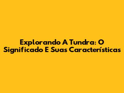 Explorando A Tundra: O Significado E Suas Características