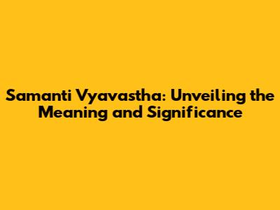 Demystifying Samanti Vyavastha: The Core Meaning