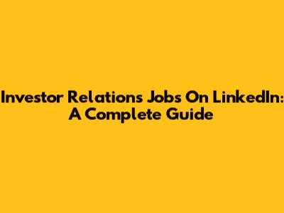 Investor Relations Jobs On LinkedIn: A Complete Guide
