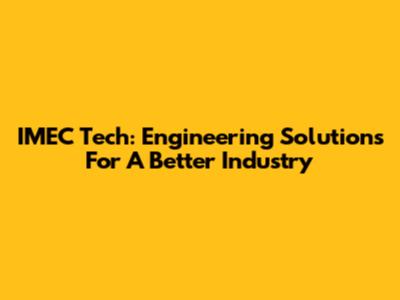 IMEC Tech: Engineering Solutions For A Better Industry
