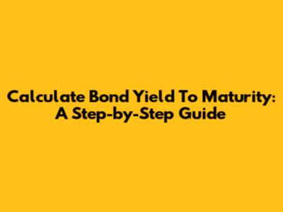 Calculate Bond Yield To Maturity: A Step-by-Step Guide