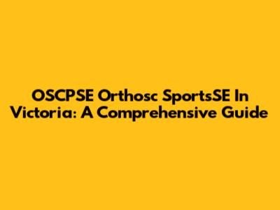 OSCPSE Orthosc SportsSE In Victoria: A Comprehensive Guide