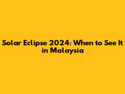 Solar Eclipse 2024 Malaysia Time: What to Expect