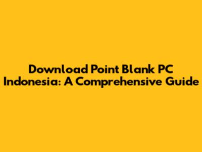 Download Point Blank PC Indonesia: A Comprehensive Guide