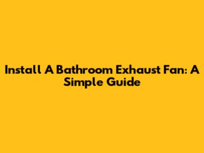 Install A Bathroom Exhaust Fan: A Simple Guide
