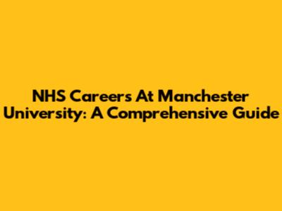 NHS Careers At Manchester University: A Comprehensive Guide