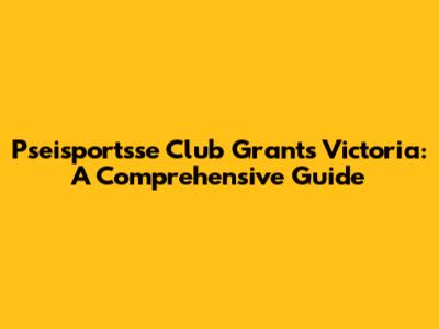 Pseisportsse Club Grants Victoria: A Comprehensive Guide