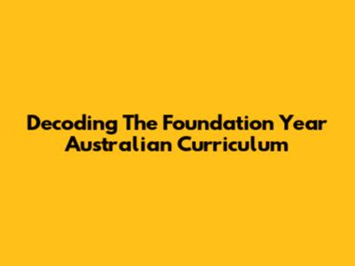 Decoding The Foundation Year Australian Curriculum