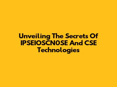 Unveiling The Secrets Of IPSEIOSCN0SE And CSE Technologies