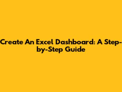 Create An Excel Dashboard: A Step-by-Step Guide